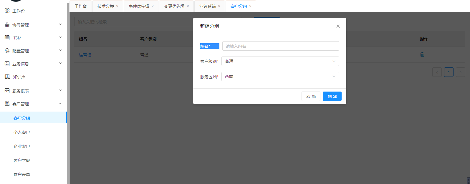 點(diǎn)擊新建分組。彈出對(duì)話框,按要求填寫必填項(xiàng),根據(jù)實(shí)際需要填寫。如果確認(rèn)點(diǎn)擊創(chuàng)建,放棄點(diǎn)擊取消