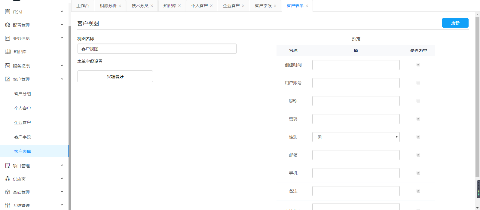 客戶表單主要是由客戶字段生成,選擇需要的字段來(lái)生成客戶表單。