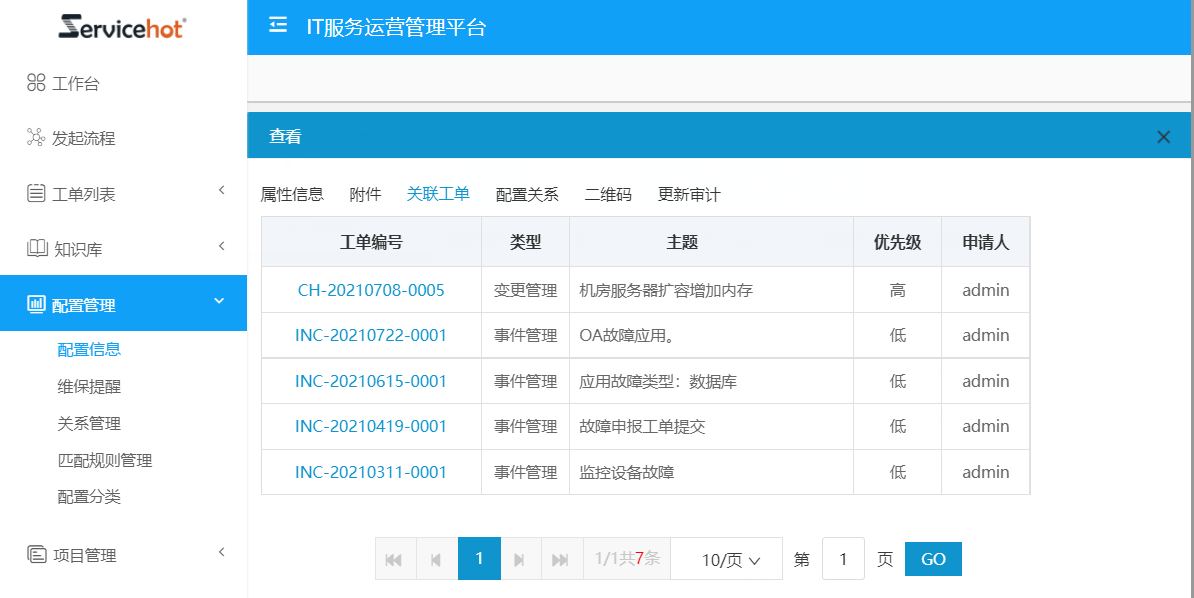 ServiceHot ITSM客戶服務(wù)管理系統(tǒng)提供基于ITIL的服務(wù)流程和工單、提供基于CMDB的資產(chǎn)管理和配置管理、提供項(xiàng)目管理、合同管理等功能。在客戶服務(wù)過程中,所有的服務(wù)流程與客戶資產(chǎn)關(guān)聯(lián),服務(wù)臺(tái)和工程師可一鍵查看該資產(chǎn)的配置信息,甚至包括資產(chǎn)采購(gòu)情況、維保日期,歷史故障處理情況等,輕松應(yīng)對(duì)一切疑難雜癥。