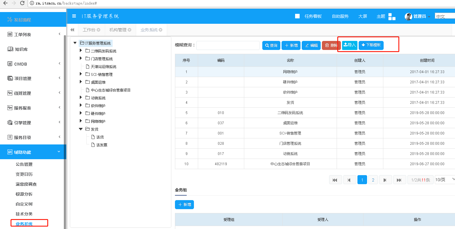 3. 新增了三級業務分類的導入,首先需要您先下載模板,信息填寫完整之后導入到系統內。