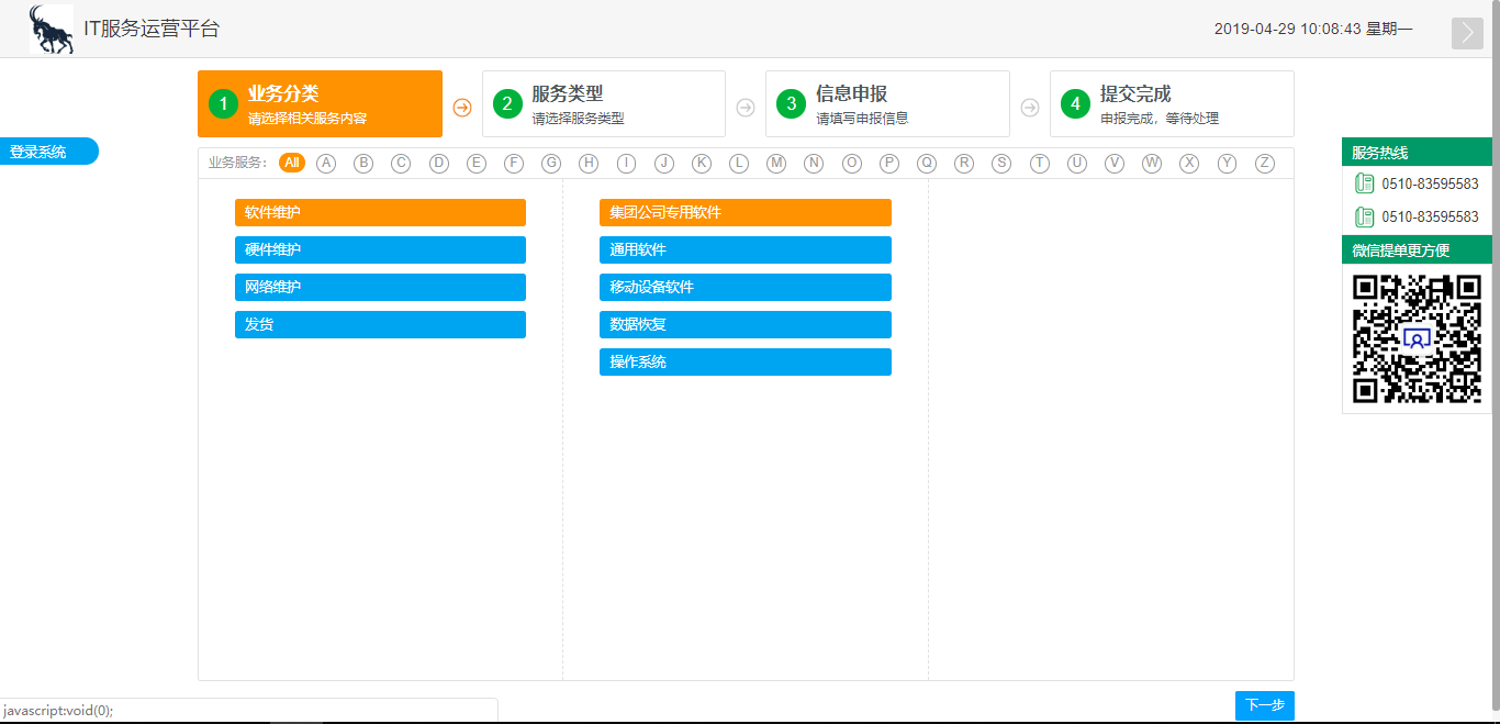 中大型企業軟硬件品類繁多,用戶報修操作復雜度高,導致運維系統上線困。ServiceHot ITSM提供導航式自助服務臺功能,引導用戶一步一步快速完成申請和故障的提交。