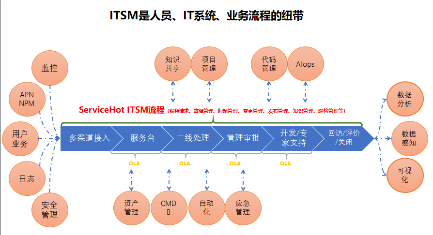 ServiceHot ITSOM產品升級之后的API增加到30多個,可全面覆蓋產品組織、人員、服務臺、各類流程、知識、公告、通知等幾大功能模塊,并且可通過接口對全流程進行驅動。在企業IT常用的管理工具中,ITSOM系統是具有極其特殊的地位的,為何?